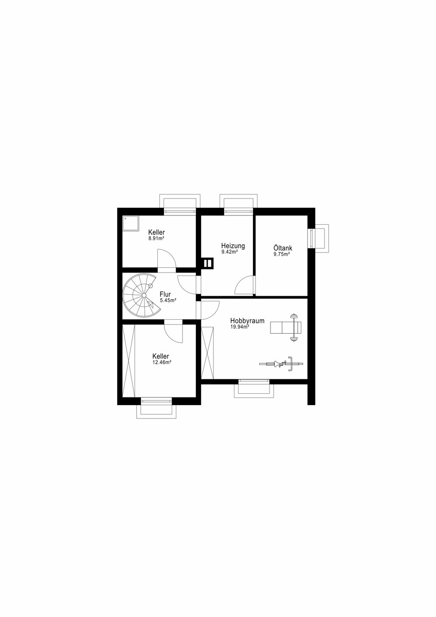 Das Haus ist vollständig unterkellert. Zusätzlich zu den üblichen Heizungs- und Abstellräumen bietet das Kellergeschoss einen großen Hobbyraum, der sich wunderbar in eine persönliche Wellnessoase oder einen Fitnessraum umwandeln lässt.