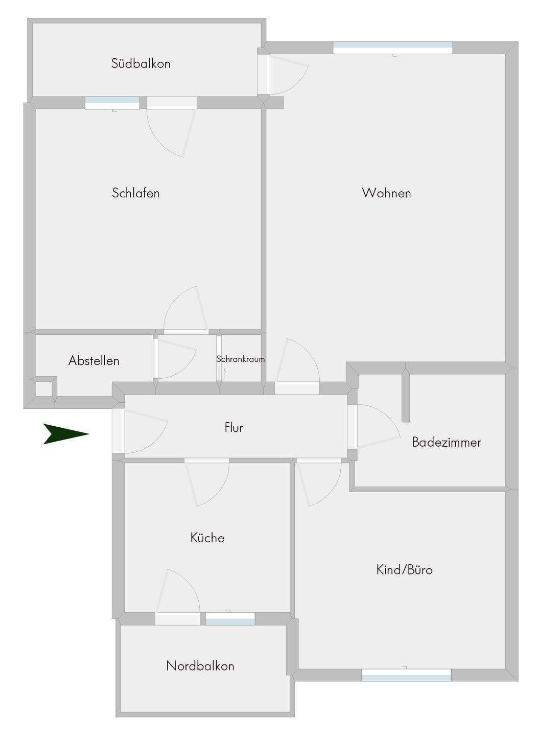 Freihstehende, gut aufgeteilte 3 Zimmer Wohnung mit 2 Balkonen