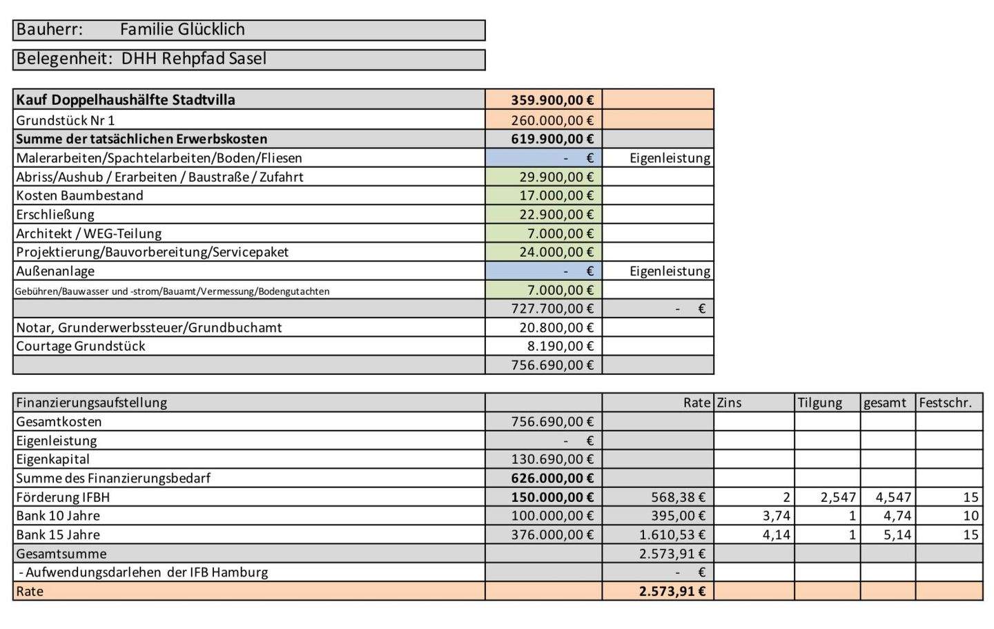 Baukostenaufstellung -
