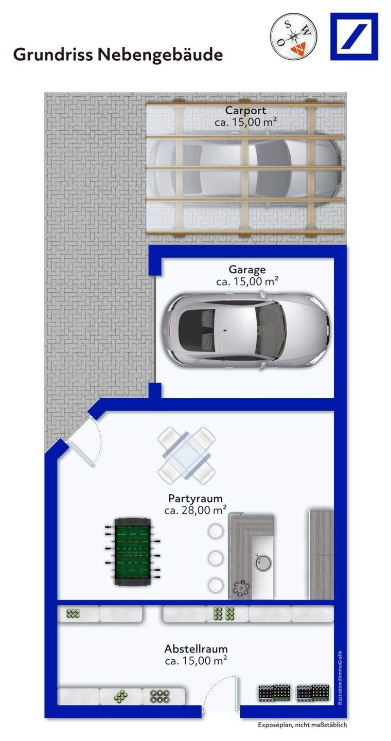 • mit eigenem Partyraum und anschließender massiver Garage -