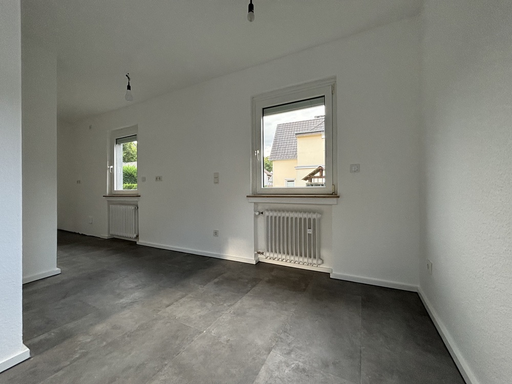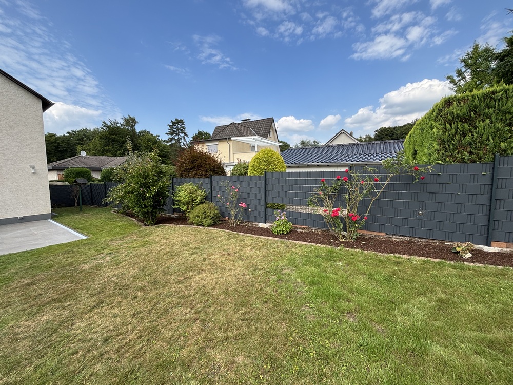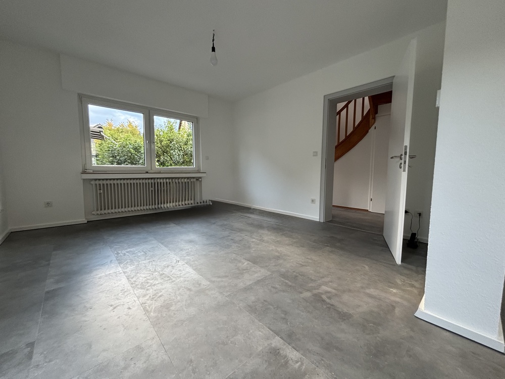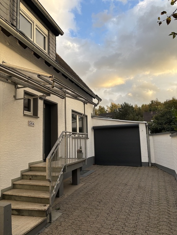 Dieses charmante, frisch renovierte Haus bietet auf ca. 93 m² Wohnfläche alles, was man zum Wohlfühlen braucht – und noch einiges mehr. Das Haus liegt in ruhiger Lage, nur ein paar Schritte vom Wald entfernt, und ist trotzdem super an die A3 und A59 angebunden. Perfekt für alle, die Natur und Stadt verbinden möchten. Im Inneren erwarten Sie drei helle Zimmer – ein gemütliches Wohn-/Esszimmer, ein Schlafzimmer und ein weiteres Zimmer, das sich ideal als Büro oder Ankleide eignet. Oben gibt’s außerdem eine kleine Empore, die sich prima als Lese- oder Arbeitsbereich nutzen lässt. Das Bad befindet sich ebenfalls im Obergeschoss. Im Keller stehen Ihnen neben der Waschküche noch zwei Vorratsräume und ein Technikraum zur Verfügung – praktisch und ordentlich gelöst. Das Haus wurde gerade aufwendig renoviert und ist jetzt bereit für den Erstbezug. Es gibt neue, moderne Vinylböden im ganzen Haus, eine neue Haustür und ein elektrisches Garagentor. Elektrische Rollläden (per Fernbedienung und App steuerbar) und eine Klimaanlage (Split-System) im Schlafzimmer runden das Ganze ab. Außerdem ist das Haus netzwerkverkabelt, hat einen eigenen Netzwerkschrank und ist mit Glasfaser-Internet ausgestattet - Homeoffice ready! Draußen geht’s genauso hochwertig weiter: Auf der teils überdachten Terrasse (ca. 40 m²) können Sie entspannt den Feierabend genießen. Der Garten ist mit rund 450 m² schön groß und bietet jede Menge Platz zum Gärtnern oder einfach zum Entspannen. Highlight ist das möblierte Massivholz-Gartenhaus mit eigener kleiner Terrasse, Strom- und Frischwasseranschluss – ideal als Atelier, Rückzugsort. Ein gemauertes Gartengerätehaus und ein 1.000 Liter Regenwassertank (oberirdisch, erweiterbar) sind ebenfalls vorhanden. Zur Immobilie gehört außerdem eine Garage mit elektrischem Tor und ein Stellplatz direkt davor. Kurz zusammengefasst: •Ca. 93 m² Wohnfläche, 3 Zimmer, Küche, Diele, Bad •Empore im OG als Lese-/Arbeitsbereich •Ca. 38 m² Keller mit Waschküche & Vorratsräumen •Baujahr: 1965 •Ca. 450 m² Garten + ca. 40 m² Terrasse (teilweise überdacht) •Möbliertes Gartenhaus mit Strom- und Wasserversorgung •Ruhige Lage nahe Wald, zentrumsnah, gute Autobahnanbindung •Erstbezug nach Renovierung, moderne Ausstattung
