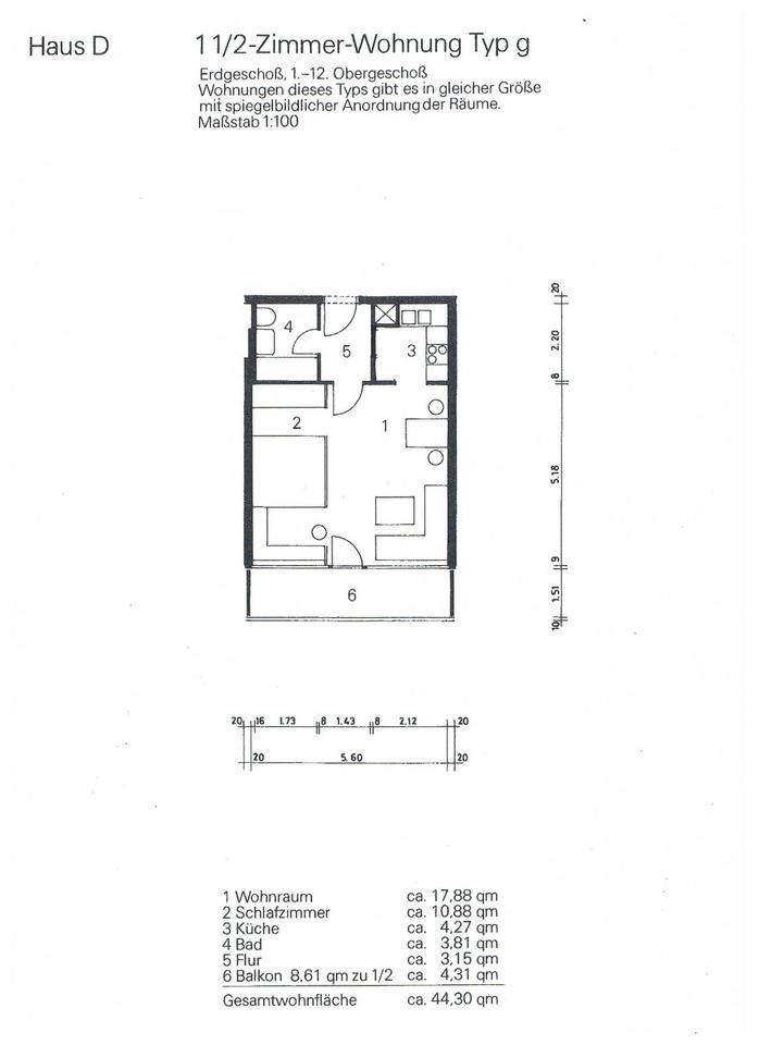 Gesamtgröße:ca. 44,00 m²