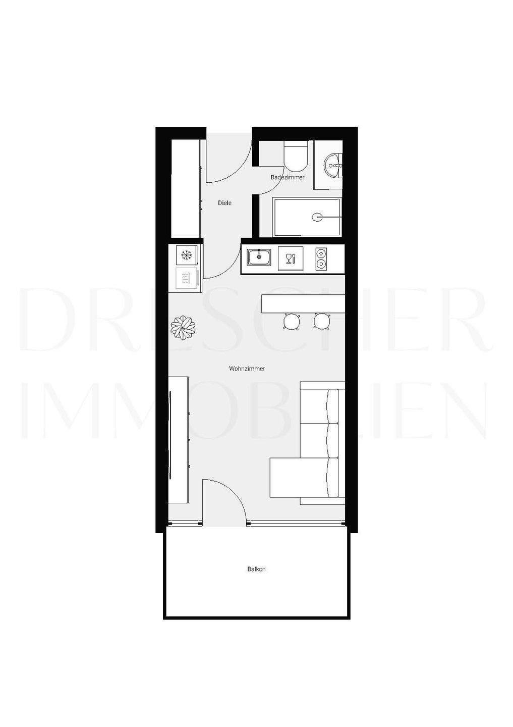 Visualisierung (Wohnbereich) - 1 Zimmer Etagenwohnung in München