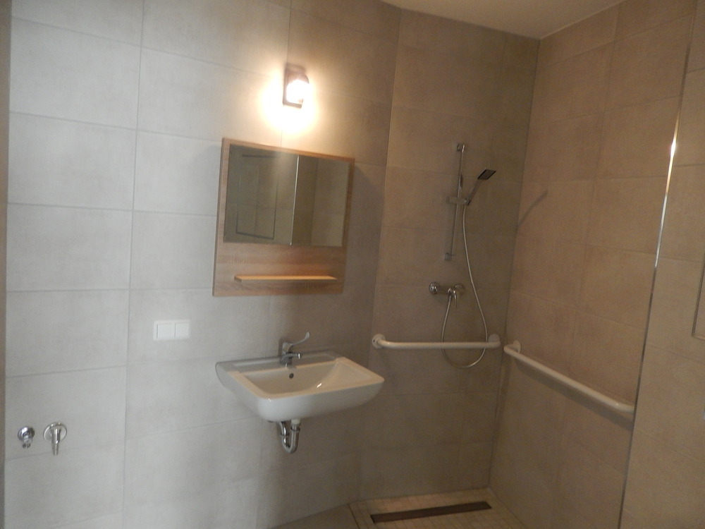 Die zu vermietende Wohnung befindet sich in einer kleinen Wohnanlage, in der ein Pflegedienst vor Ort installiert ist. Somit ist eine Rund-um-die-Uhr Versorgung gewährleistet. Die Wohnfläche besteht aus dem Zimmer mit eingebauter Küche und WC mit barrierefreier Dusche von 26 m² und der mit den Mitbewohnern gemeinsam genutzten Gemeinschaftsfläche von 19 m². Die Wohnanlage besteht aus 4 Häusern. In Ihrem Haus wohnen je Etage 5 Mitbewohner.
