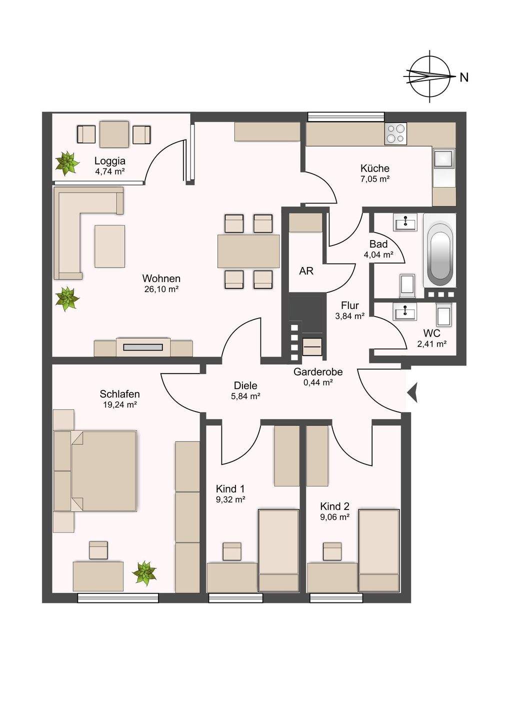 Wohnfläche:ca. 89,00 m²