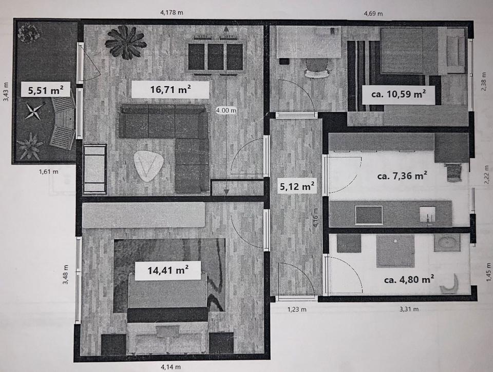 Gesamtgröße:ca. 62,00 m²