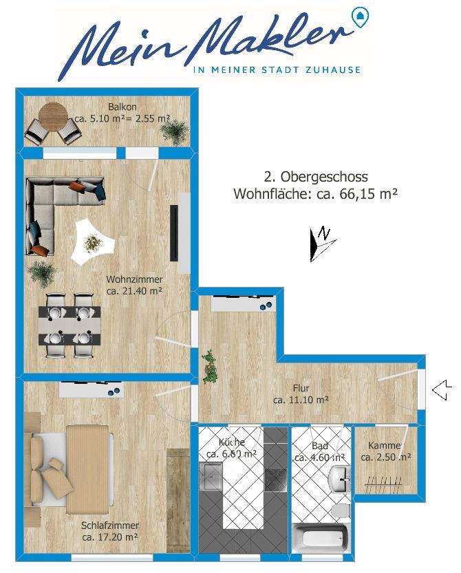 Wohnfläche:ca. 66,00 m²