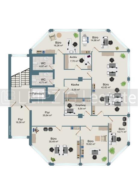 Sie befinden sich hier: zentrumsnahe Büroetage, 225,55qm, Empfang + 5 Büros + 42qm Besprechungsraum, Fahrstuhl in Leipzig Nord - 2860514013-277-4261 | 1A-Immobilienmarkt.de
