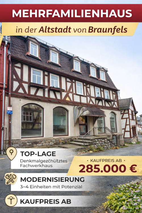 Sie befinden sich hier: Historisches Wohnerlebnis als Kapitalanlage oder zum Eigennutz in Braunfels - 3290558730-208-4840 | 1A-Immobilienmarkt.de