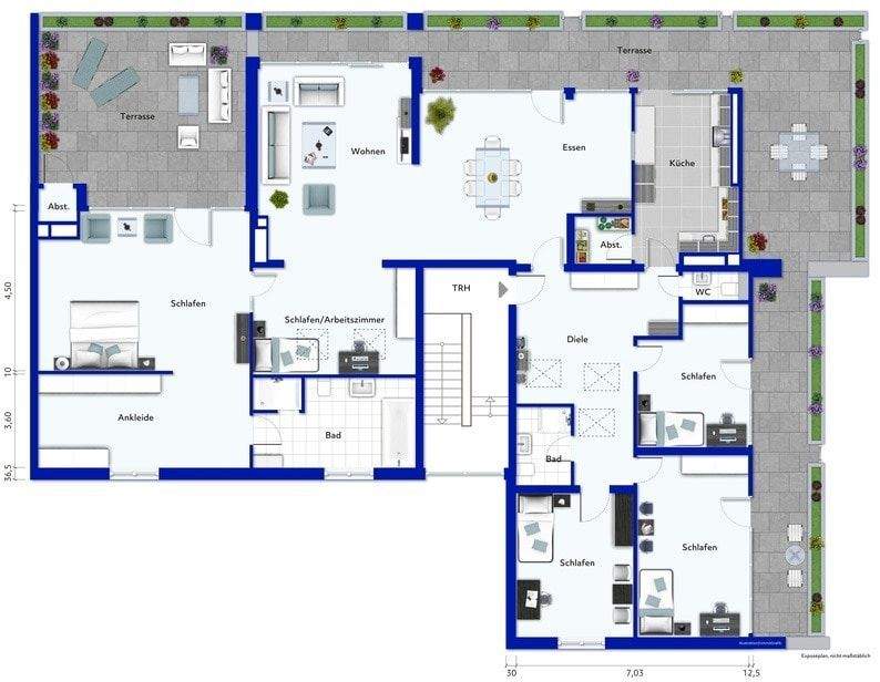 Sie befinden sich hier: Krefeld-Stadtwald: luxuriöse 6-Zimmer-Wohnung mit Ost-, Süd- und Westterrasse in Krefeld Cracau - 25GJNYECUN2I | 1A-Immobilienmarkt.de