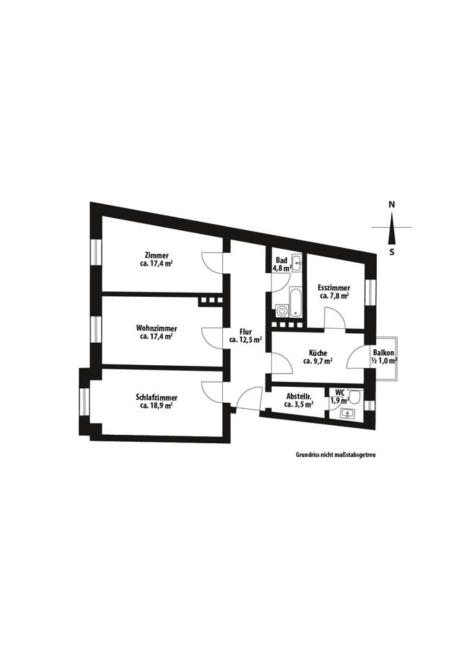 Altbauwohnung am Harras mit Balkon - 3,5 Zimmer