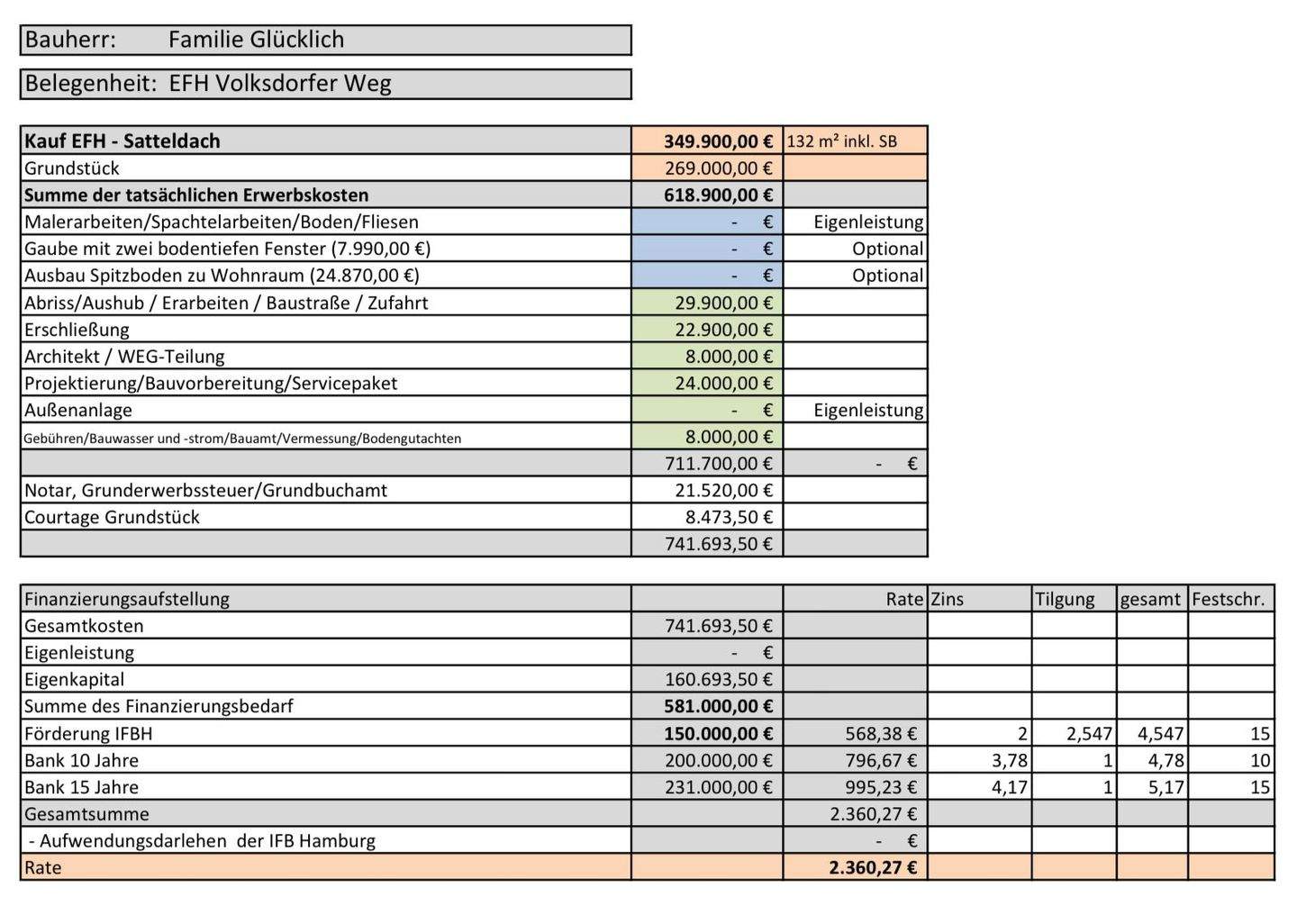 • Baukostenaufstellung -