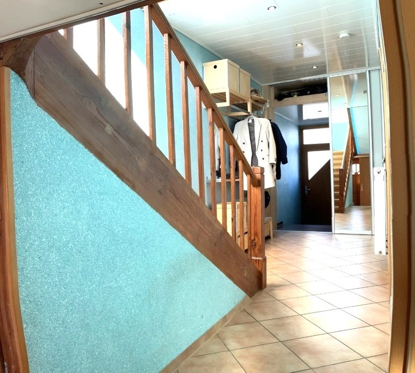 Massive Holzeingangstüren und erneuerte Holztreppe