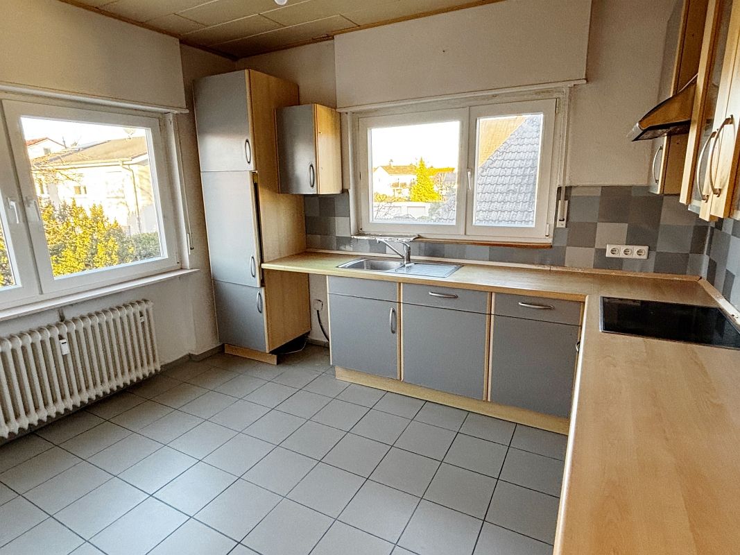 Im Obergeschoss befindet sich eine weitere großzügige 3-Zimmer-Wohnung mit ca. 80 m² Wohnfläche und fast identischem Grundriss. Auch hier ist die vorhandene Einbauküche inklusive.