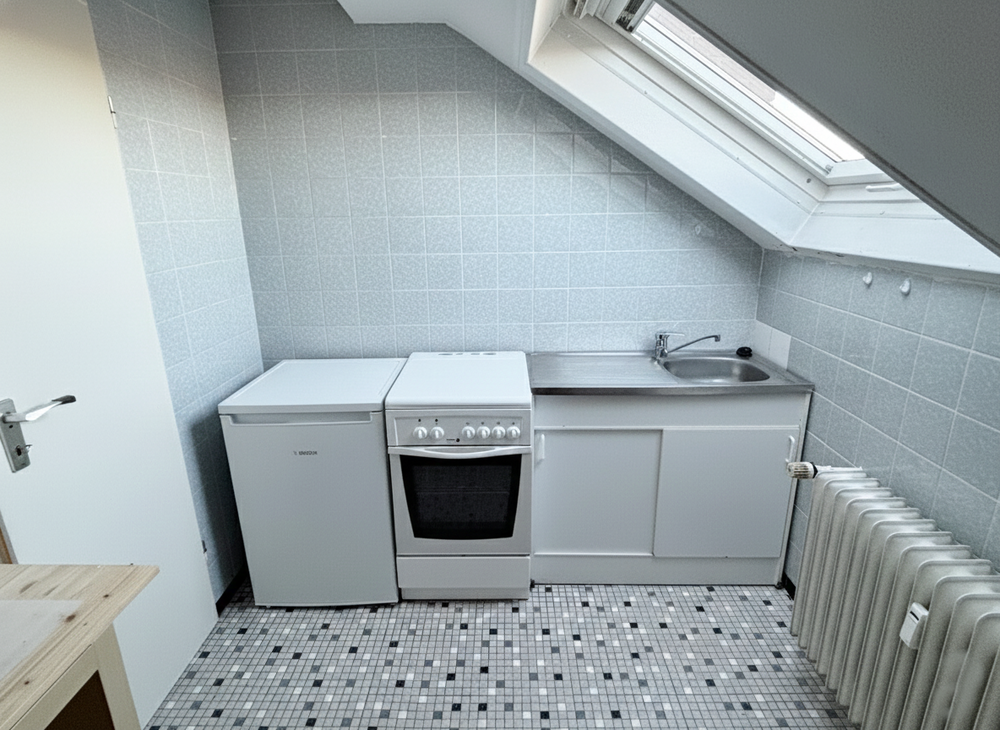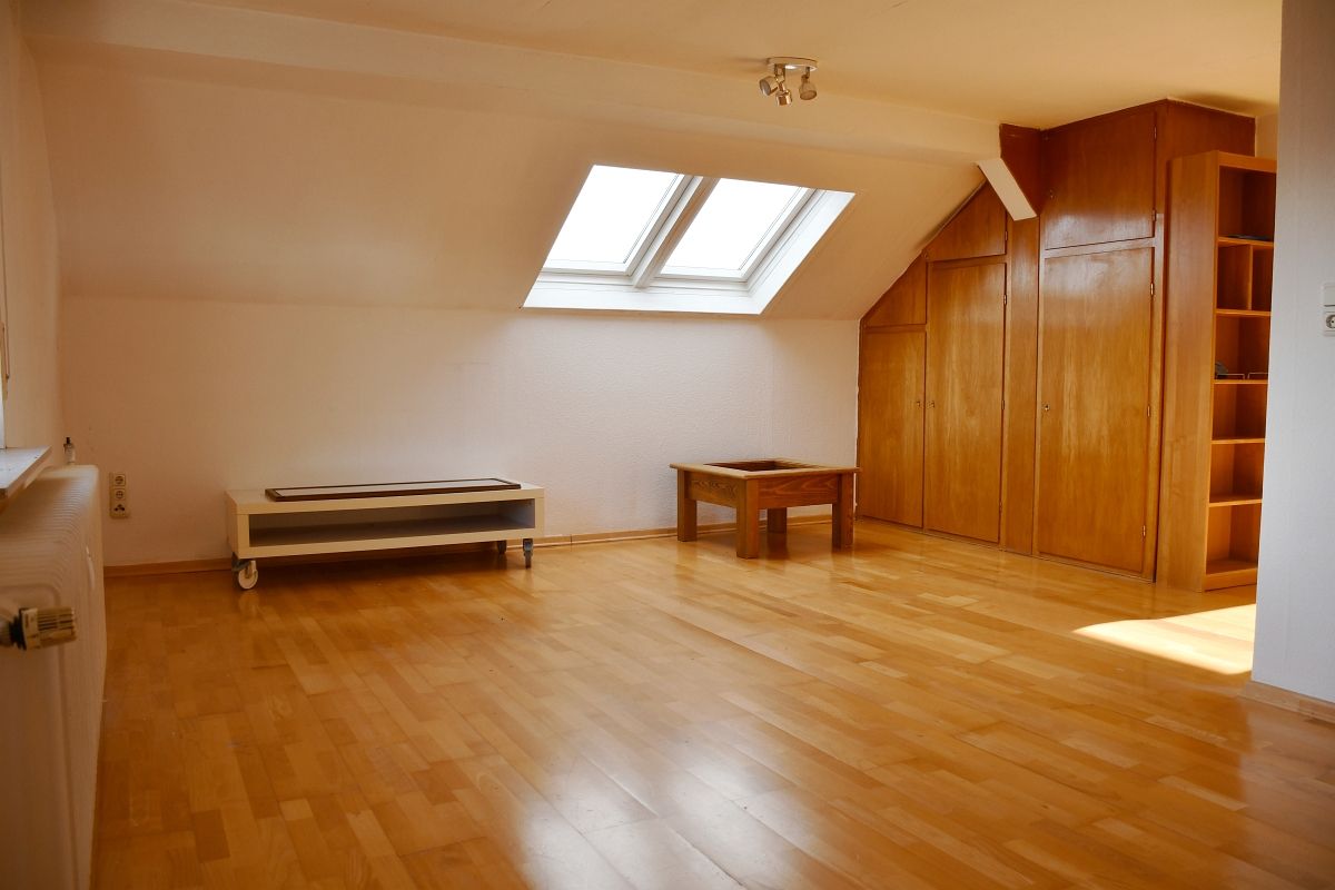 Das Dachgeschoss beherbergt ein großzügiges Appartement mit ca. 45 m² Wohnfläche. Der Wohn-/Schlafraum ist offen gestaltet, ergänzt durch eine separate Küche, ein Tageslichtbad mit Wanne sowie einen praktischen Abstellraum innerhalb der Wohnung.