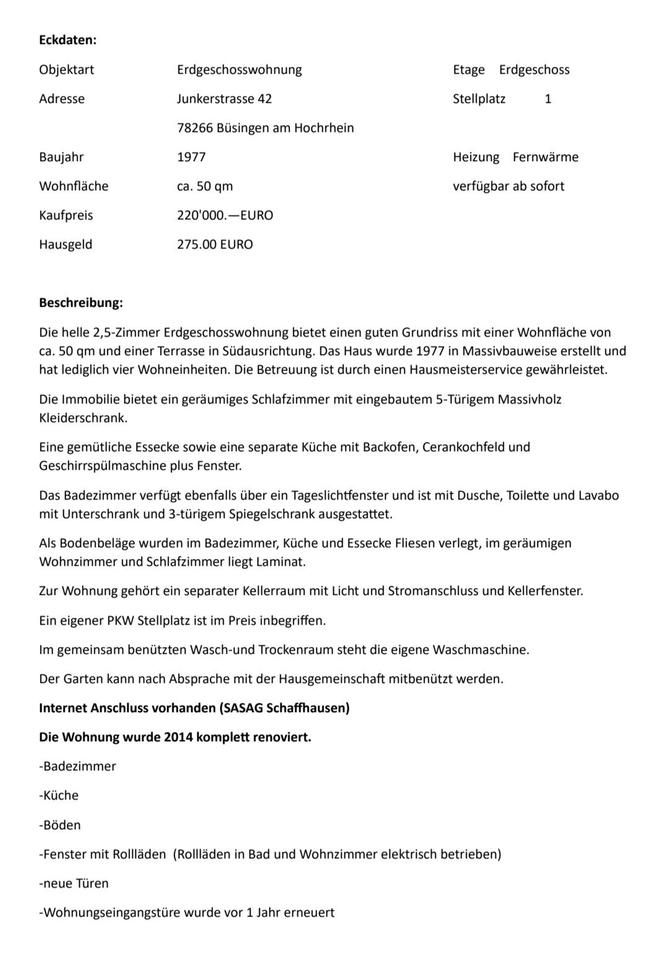 Sie befinden sich hier: 2,5-Zimmer EG-Wohnung mit Terrasse & Stellplatz provisionsfrei in Büsingen am Hochrhein - 3292673563-196-9401 | 1A-Immobilienmarkt.de