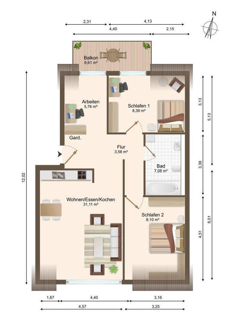 Gesamtgröße:ca. 67,00 m²