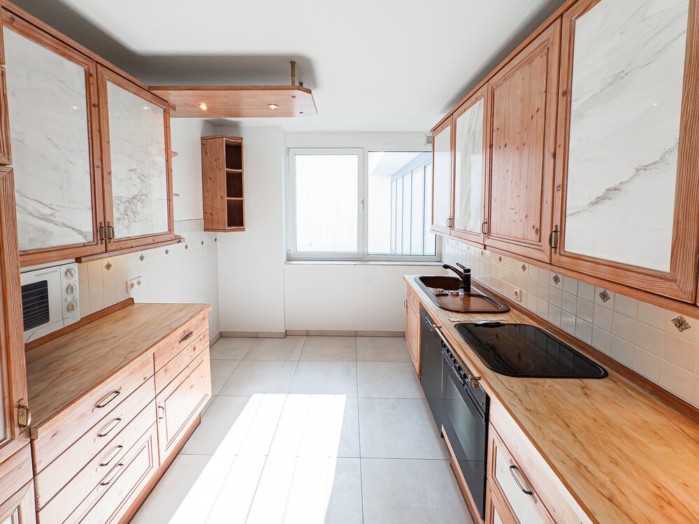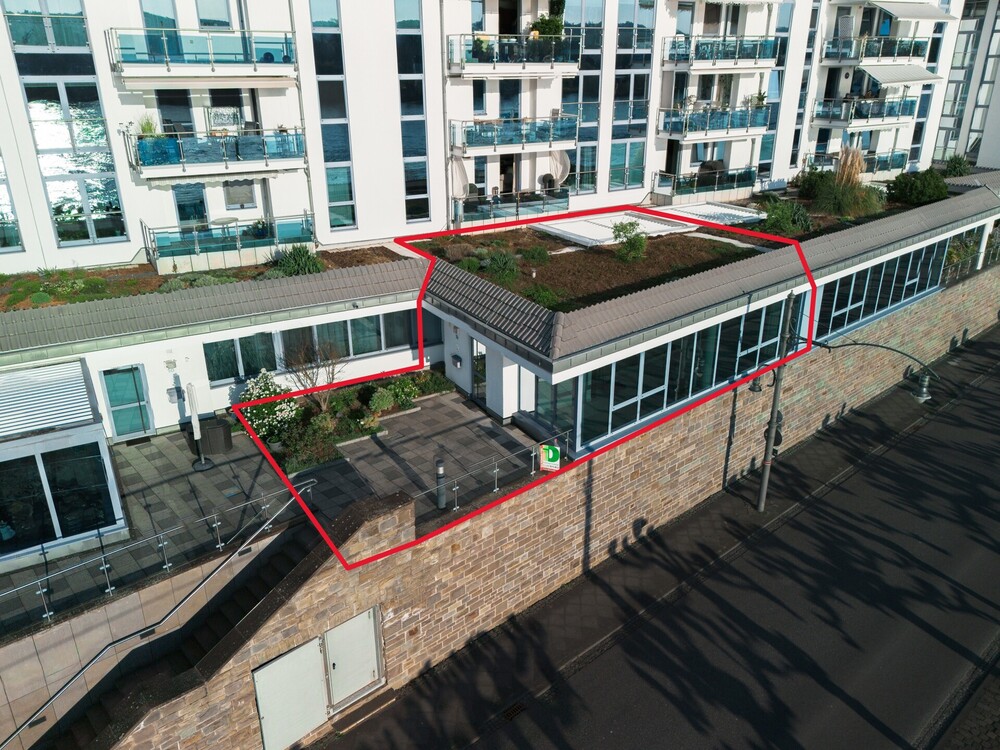 -Terrasse mit Rheinblick -Atrium -3 flexibel nutzbare Zimmer -neue Fliesen in Küche, Schlafzimmer und drittem Zimmer -inkl. Einbauküche -Gäste-WC -Großer Abstellraum -Tiefgaragenstellplatz -Fußbodenheizung