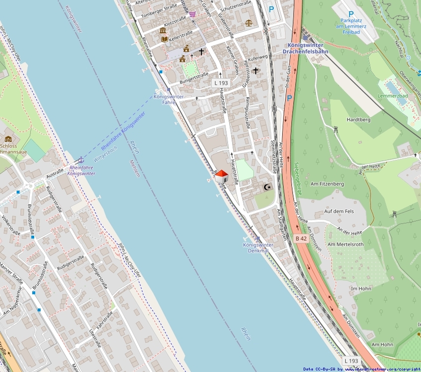 Die Immobilie liegt in direkter Rheinlage an der Rheinallee in Königswinter. Die Lage zeichnet sich insbesondere durch den unmittelbaren Bezug zum Rhein und die freie Sicht auf das Wasser aus. Die Rheinpromenade verläuft direkt vor dem Gebäude und bietet Möglichkeiten für Spaziergänge und Freizeitaktivitäten. Königswinter verfügt über eine gewachsene Infrastruktur mit Einkaufsmöglichkeiten, Gastronomie sowie Einrichtungen des täglichen Bedarfs. Eine gute Verkehrsanbindung ermöglicht eine zügige Erreichbarkeit der umliegenden Städte, insbesondere Bonn. Gleichzeitig bietet die Lage eine ruhige Wohnatmosphäre mit hohem Erholungswert durch die Nähe zum Rhein und zum Siebengebirge.