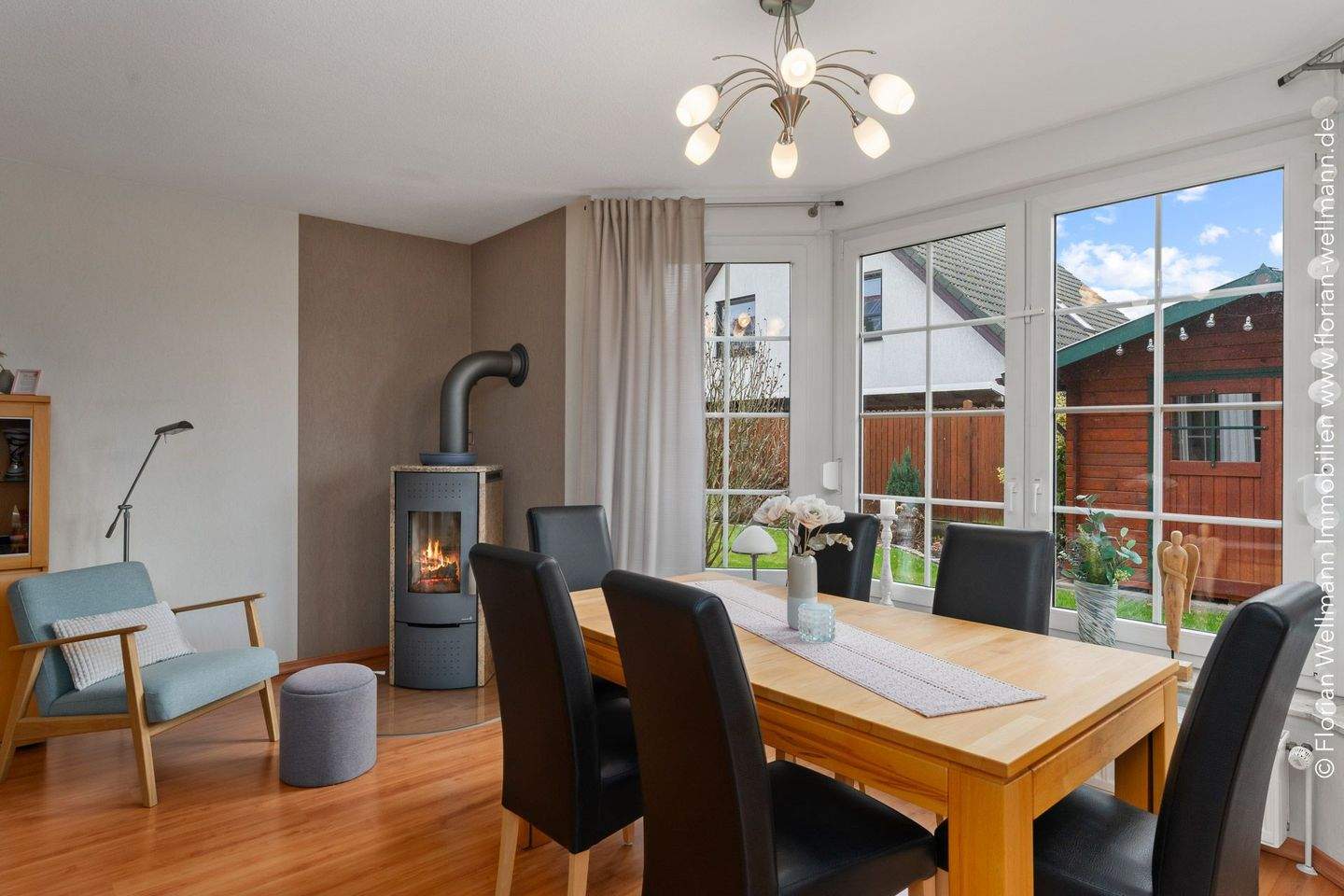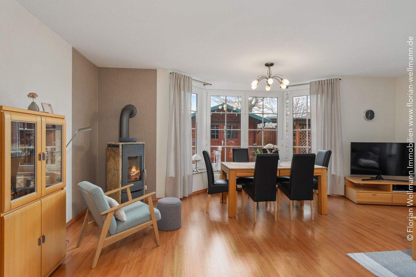 • Offener Wohn-Essbereich mit Kamin 30,38 m ² -