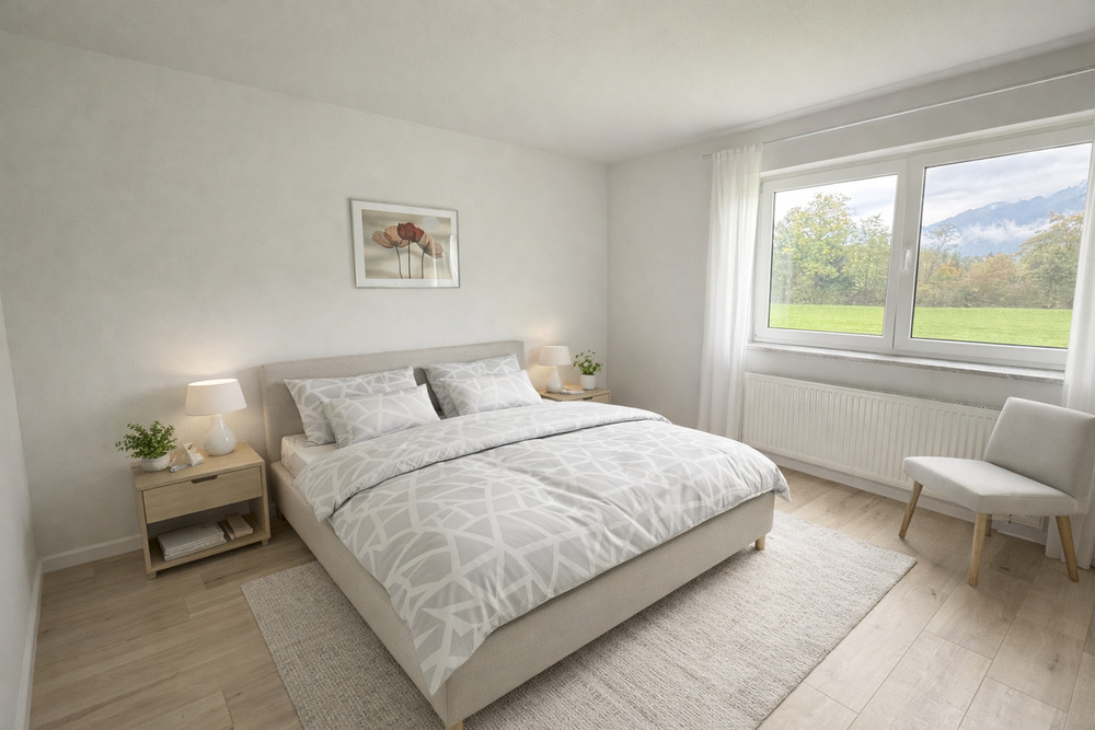 Schlafzimmer mit KI generierten Dekoration / Einrichtung - Etagenwohnung mit 100,00 m² in Füssen zum Kaufen