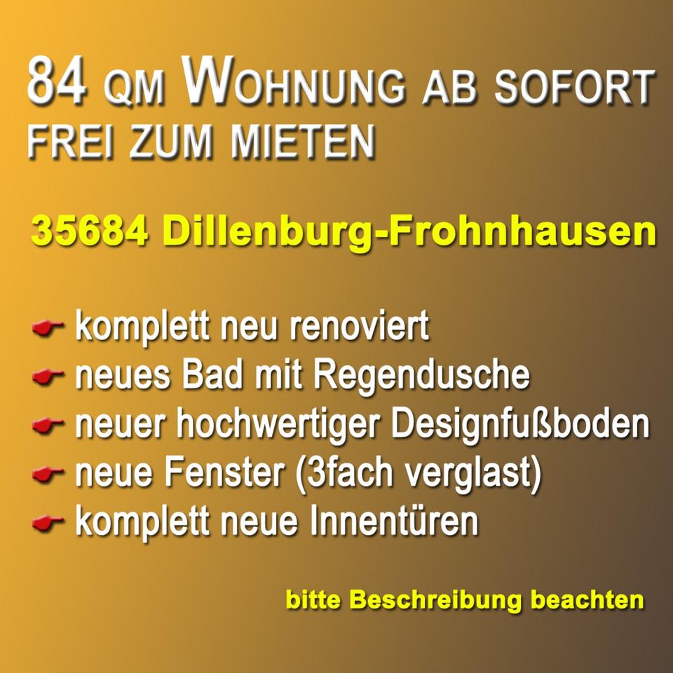 Sie befinden sich hier: Mietwohnung Frohnhausen 84m² m. Küche & Garage in Dillenburg Frohnhausen - 3293677922-203-4786 | 1A-Immobilienmarkt.de