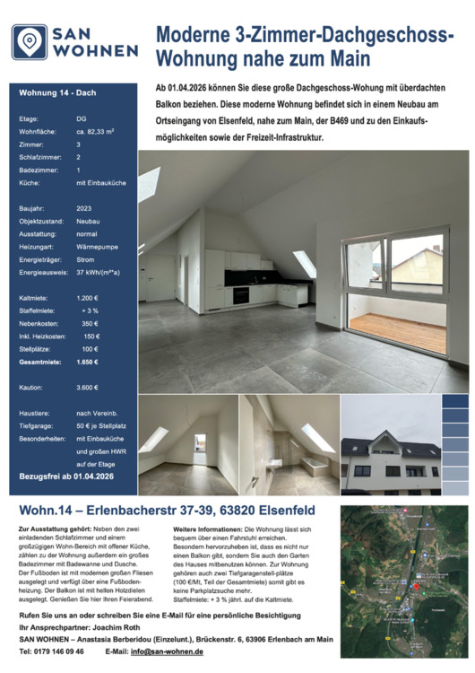 Sie befinden sich hier: Ihre neue Wohnung: großzügige 3-Zimmer-Dachgeschoss-Wohnung mit Einbauküche in Elsenfeld - 3293697087-203-7408 | 1A-Immobilienmarkt.de