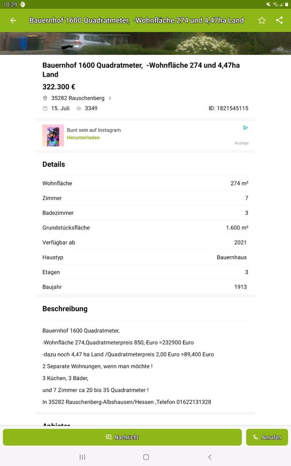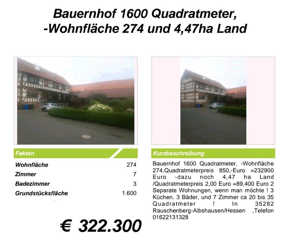 Sie befinden sich hier: Haus,Bauernhof und Landschaftliche Äcker und Wiesen in Rauschenberg - 3294222017-208-4676 | 1A-Immobilienmarkt.de