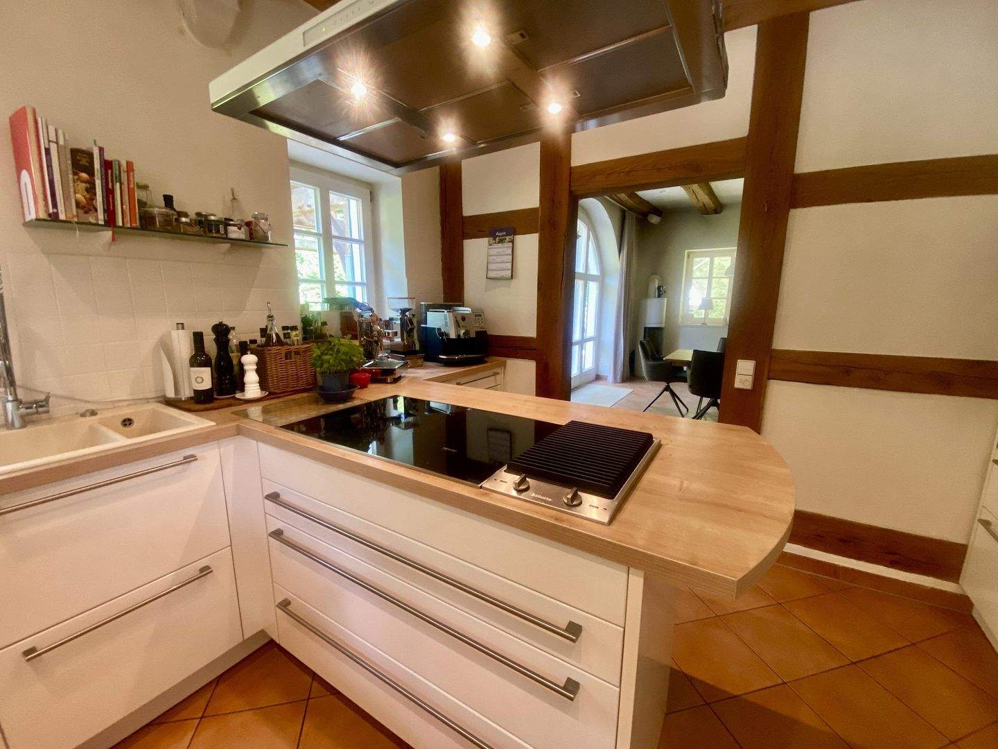 • Küche mit Blick in den Wohnbereich -