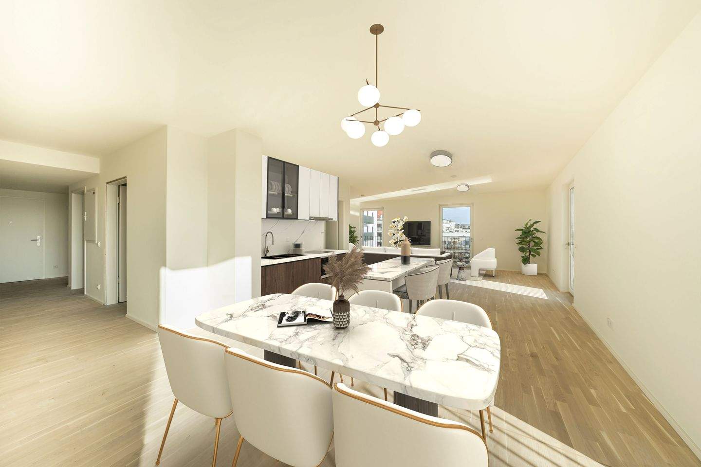 • Einrichtungsbeispiel offene Küche/ Wohnbereich - Etagenwohnung mit 128,80 m² in Berlin zum Kaufen