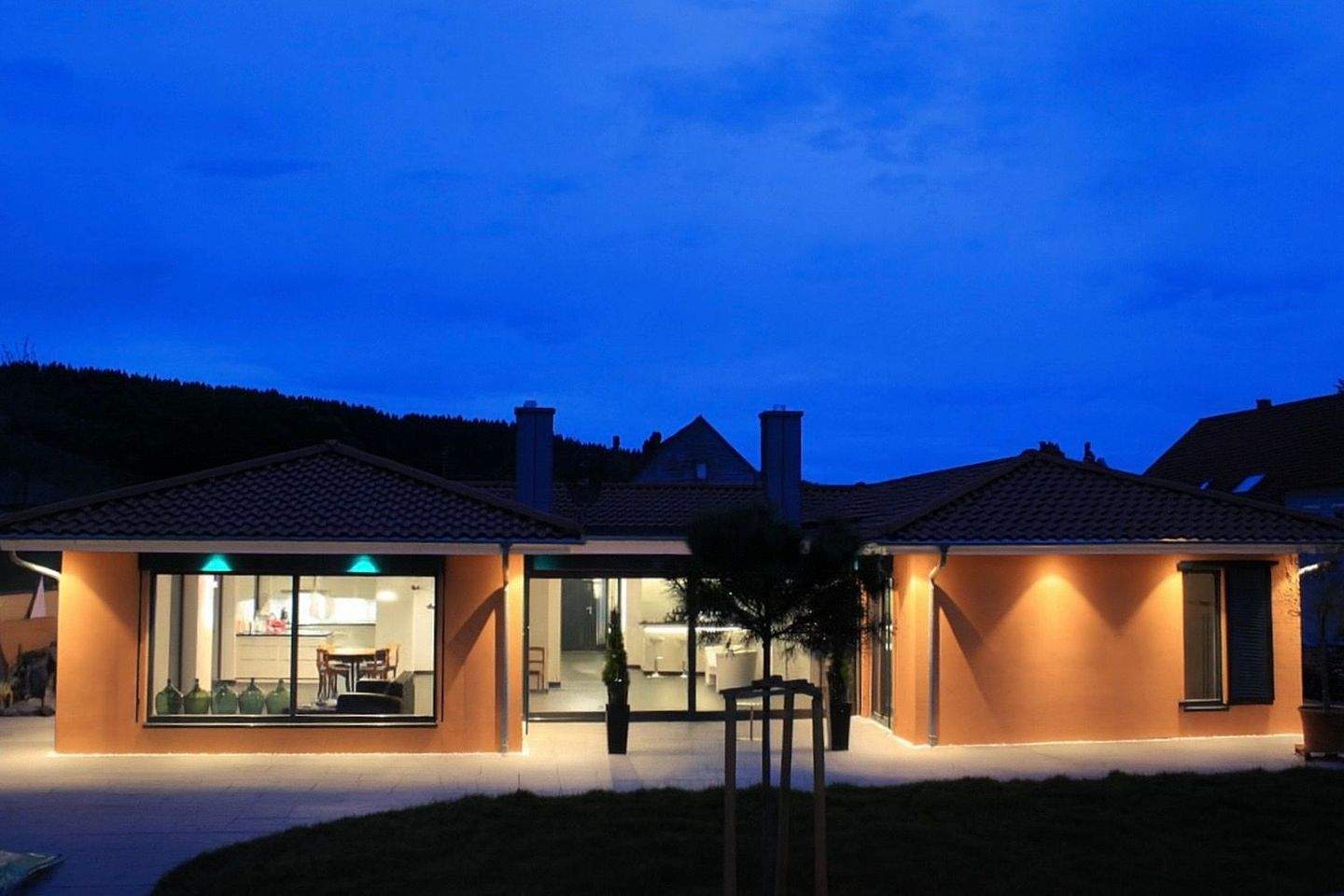 • Ansicht bei Dämmerung - 5 Zimmer Bungalow in Hinzweiler