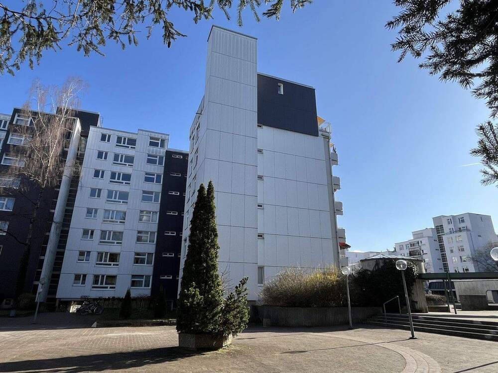 • Seitenansicht Gebäude Vorplatz - Etagenwohnung mit 84,20 m² in Ottobrunn zum Kaufen