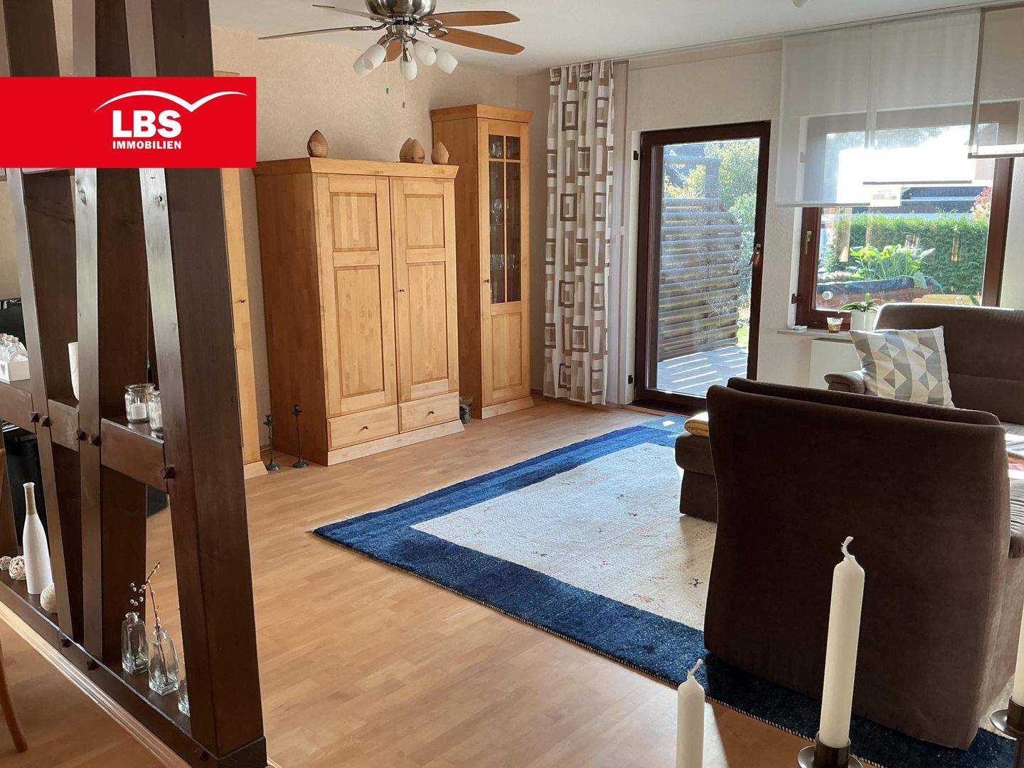 Wohnzimmer mit Blick auf die Terrasse -