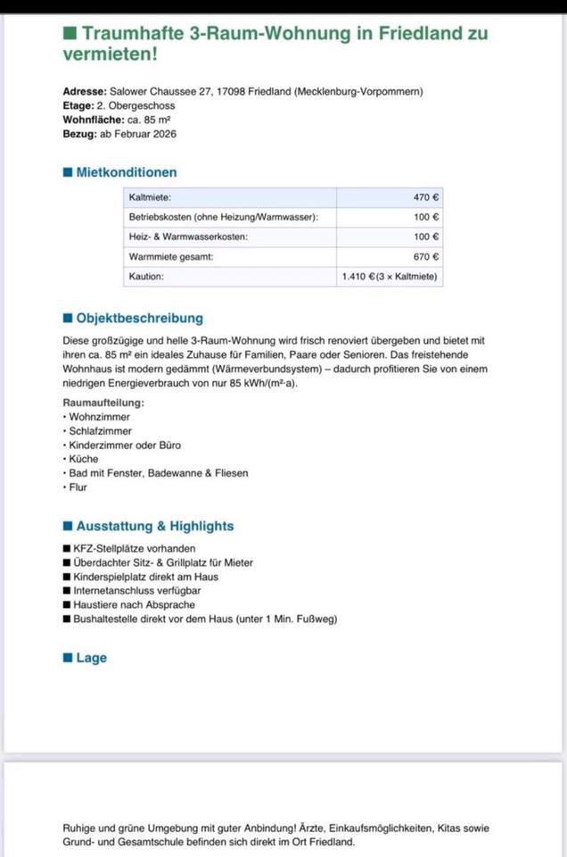 Sie befinden sich hier: Helle 3-Raum-Whg (85 m²) 2.OG in Friedland –Bezug ab Februar 2026 in Friedland - 3295690842-203-258 | 1A-Immobilienmarkt.de
