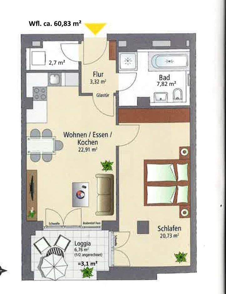 Wohnfläche:ca. 60,80 m²