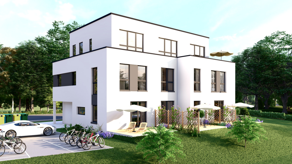 EH40 NEUBAU Reihenhaus im modernen Bauhausstil mit Staffelgeschoss und Süd - Terrasse