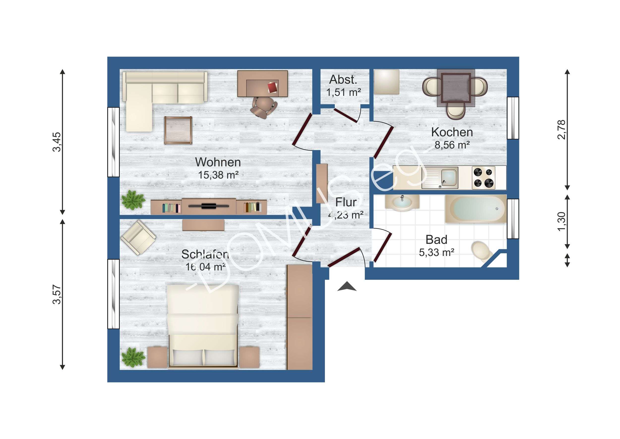 • Grundriss 2 Zimmer 50,10m² Els - Schicke 2 Zimmer Wohnung mit Dusche