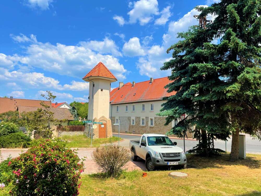 Busverbindung, Schule und Kindergarten sind nur wenige Minuten vom Objekt entfernt. Das nächste Krankenhaus befindet sich ca. 17 Autominuten vom Ort entfernt. Der Flughafen Halle/Leipzig ist in 49 Minuten mit dem Auto erreichbar.