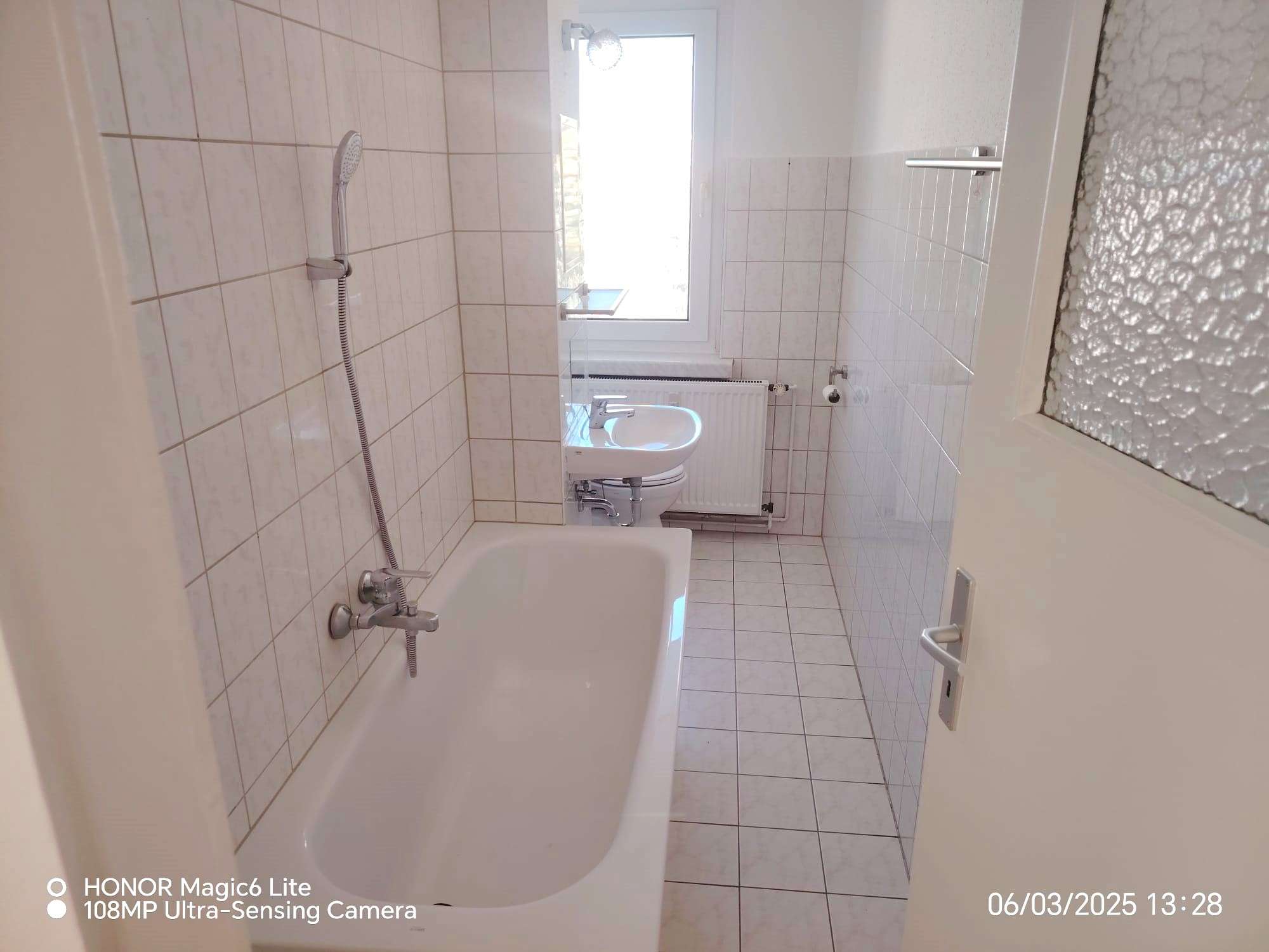 Die 3 Zimmer Wohnung im 1.OG rechts, verfügt über einen geräumigen Flur, von dem alle Zimmer einschließlich Bad und Küche abgehen. Das Badezimmer mit Fenster, verfügt über eine Wanne. Die Küche mit Fenster und Fliesenspiegel, Eine Einbauküche ist im Mietpreis enthalten. Alle Fußböden sind mit pflegeleichtem PVC Boden ausgestattet. Die Wohnung wird vervollständigt durch eine Wechselsprechanlage, TV und Telefonanschluss. Zur Wohnung gehört ein eigener Mieterkeller.