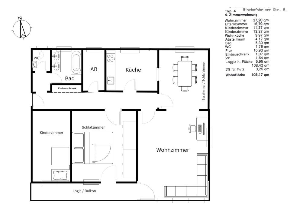 Gesamtgröße:ca. 105,00 m²