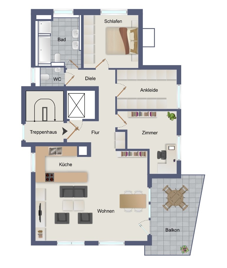 - Südlich ausgerichteter Balkon – ideal zum Entspannen und Genießen