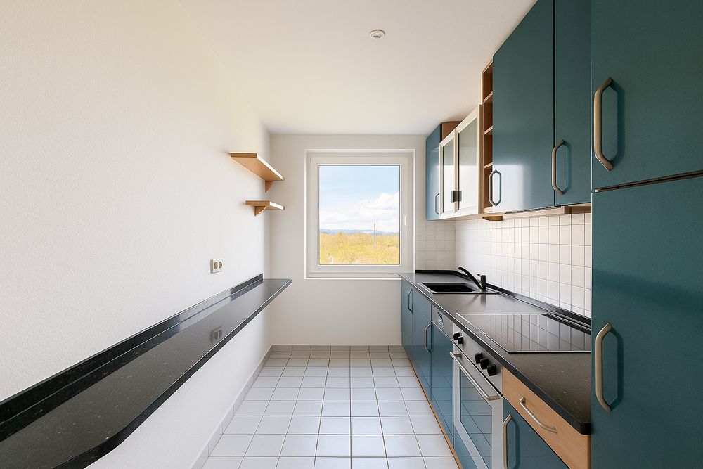 Der durchdachte Grundriss umfasst drei helle Schlafzimmer, ein separates Büro-/Arbeitszimmer, einen großzügigen Wohn- und Essbereich, eine Küche, einen geräumigen Flur sowie zwei Tageslicht Badezimmer. Herzstück der Wohnung ist die weitläufige verglaste Terrasse mit ihrem herrlichen, unverbaubaren Fernblick — hier genießen Sie ruhige Sonnenstunden und entspannte Abende mit Freunden oder Familie.