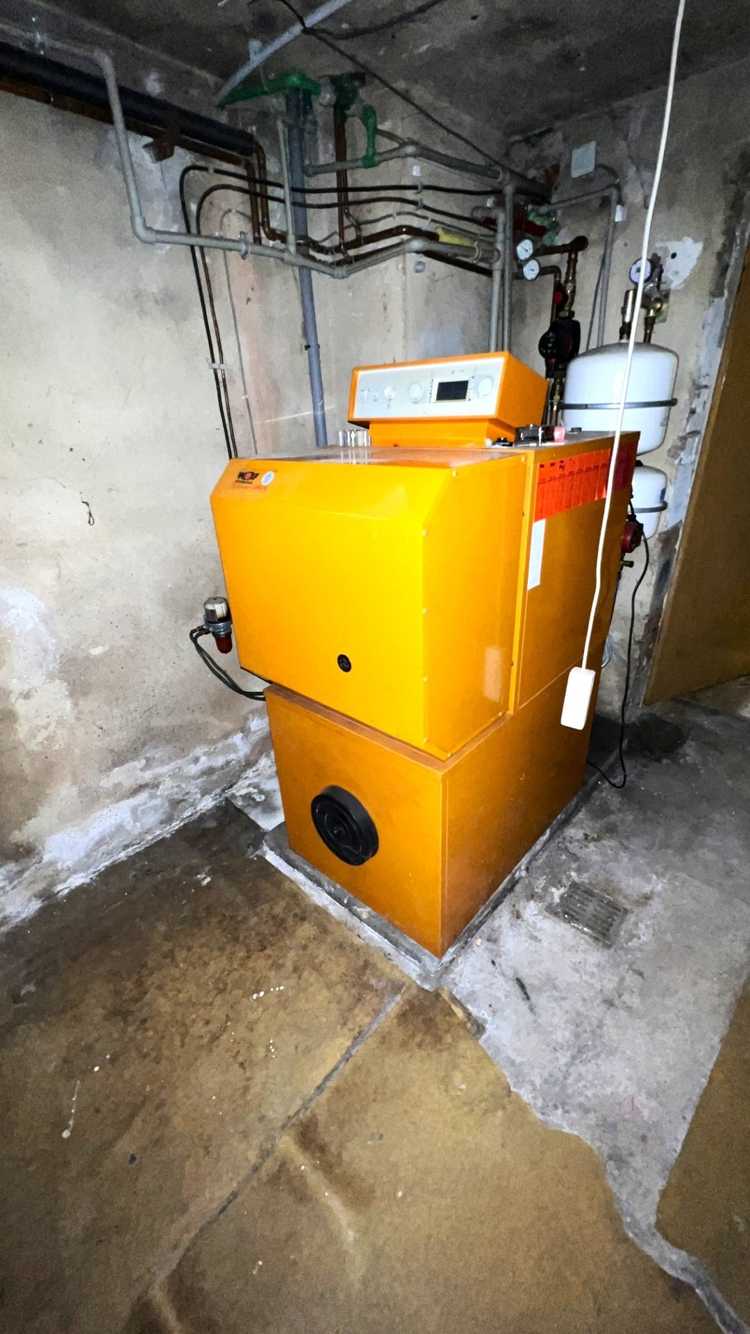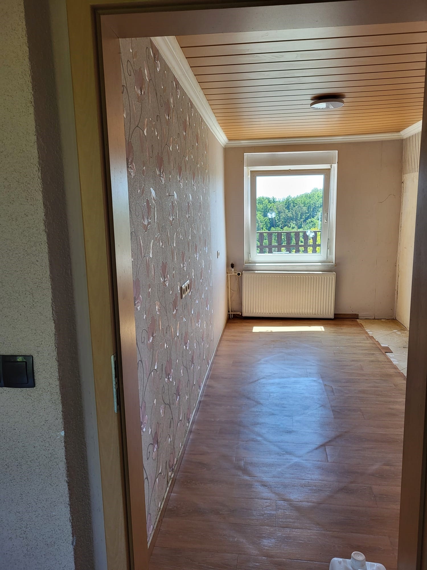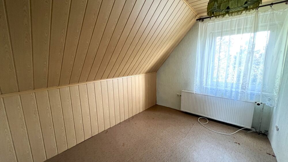 Im Dachgeschoss stehen ein Schlafzimmer, zwei Kinderzimmer sowie ein gefliestes Badezimmer mit Badewanne, Waschbecken und WC zur Verfügung. Das Haus ist voll unterkellert und bietet drei Kellerräume sowie eine Einliegerwohnung mit drei Zimmern, Küche und Bad mit Dusche, Waschbecken und WC sowie separatem Zugang.