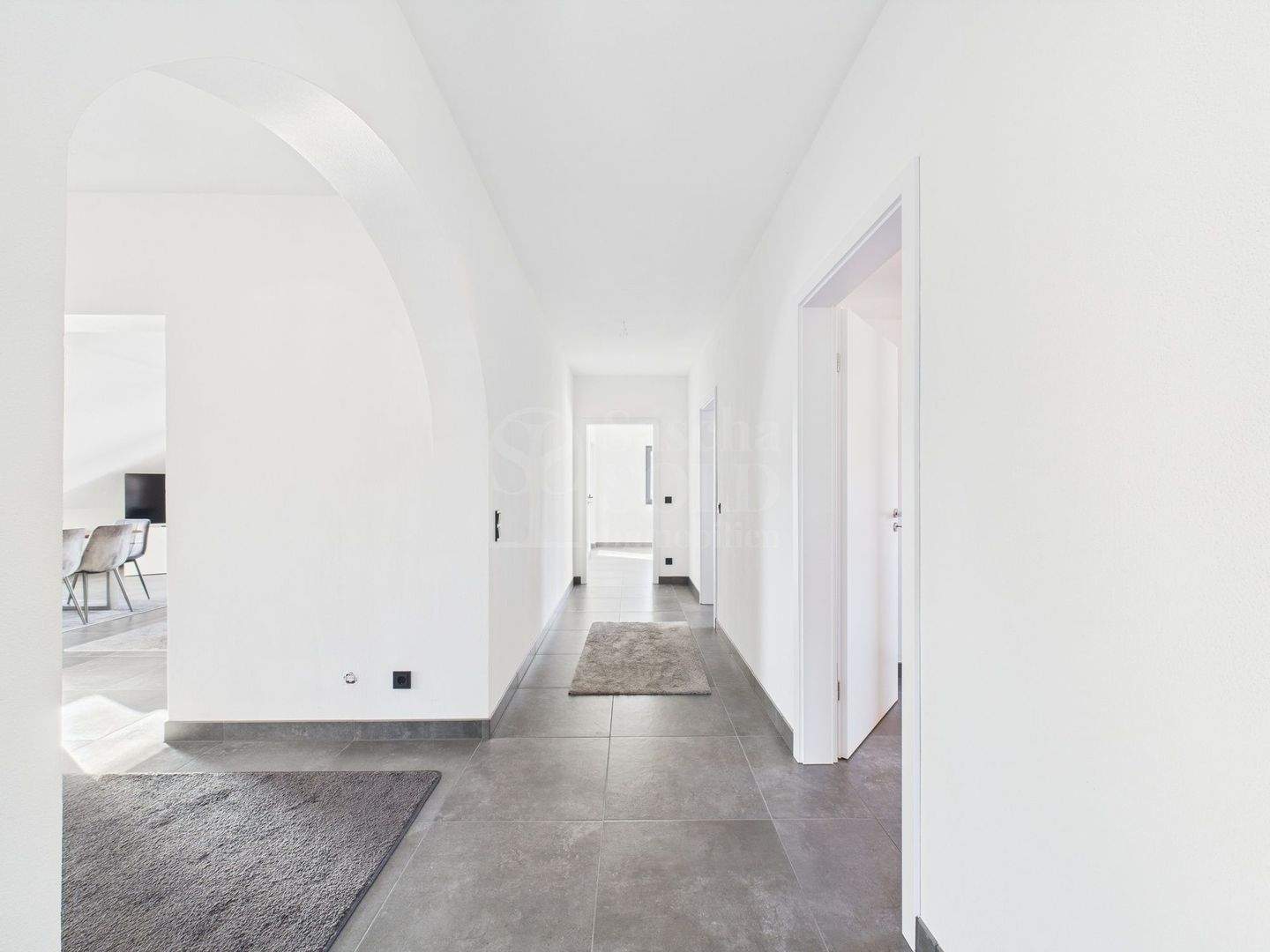 Diese helle Wohnung bietet ca. 125 m² Wohnfläche, verteilt auf vier Zimmer, eine großzügige Loggia und einem praktischen Abstellraum. Die offene Küche ist bereits mit Anschlüssen vorbereitet und kann individuell ausgestattet werden. Das Sanitärangebot umfasst ein modernes Badezimmer mit begehbarer Dusche, Toilette, Waschbecken und einem Waschmaschinenanschluss. Zusätzlich gibt es ein separates Gäste-WC mit Toilette und Waschbecken.