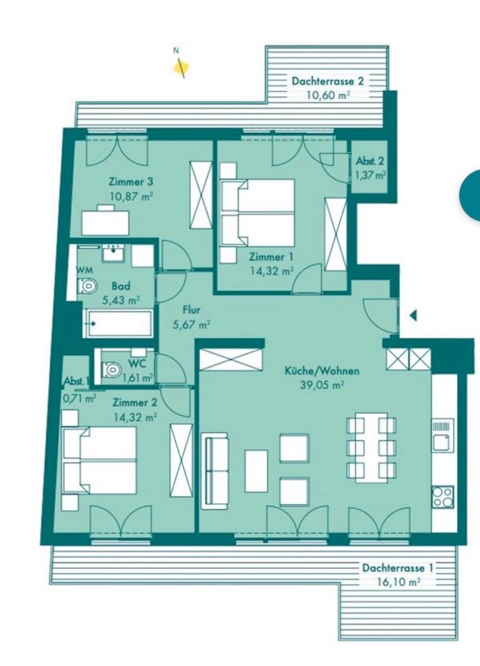 Eigentumswohnung Penthouse - 930.000,00 EUR Kaufpreis, ca.  120,00 m²