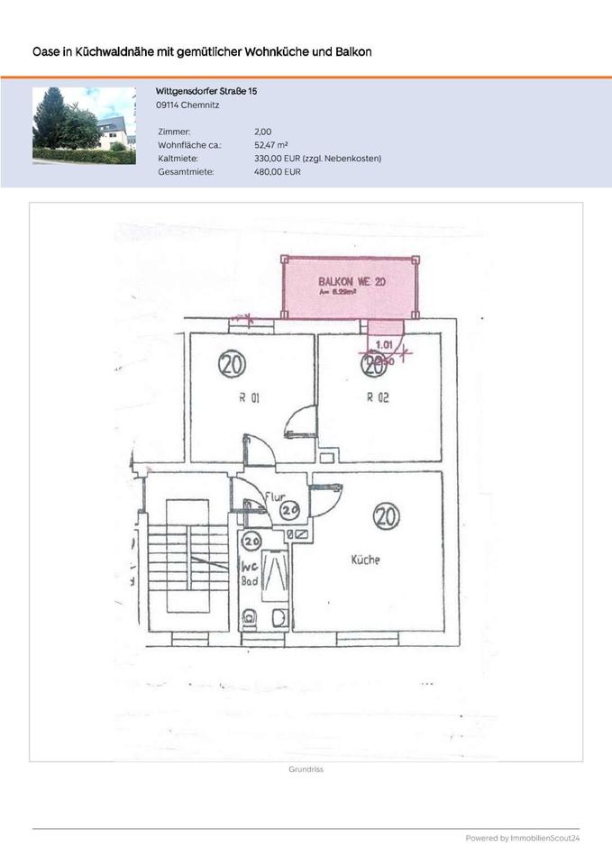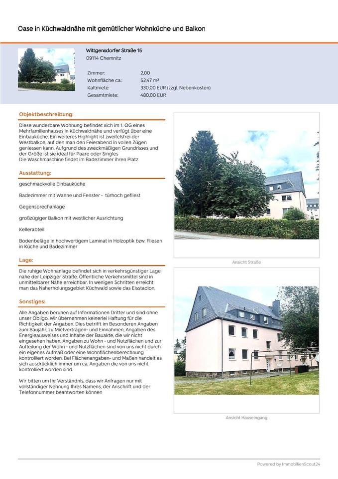 Sie befinden sich hier: Gemütliche Wohnung mit Blick auf den Küchwald in Chemnitz Borna-Heinersdorf - 3298323247-203-3889 | 1A-Immobilienmarkt.de