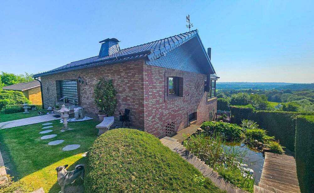 Sie befinden sich hier: Traumhafte Aussicht Höhenlage Hennef gemütliches EFH mit Wintergarten, Kamin und Garage in Hennef Bödingen - 25R1AXZDZJQ9 | 1A-Immobilienmarkt.de