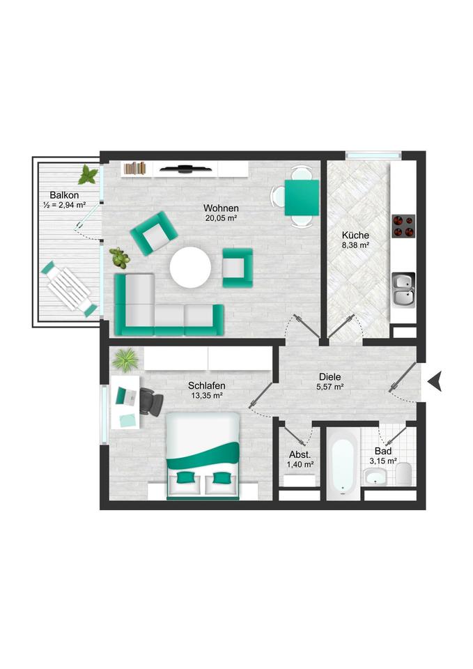 Zimmeranzahl :2 Gesamtgröße :ca. 54,63 m² Stand vom :16.01.2026
