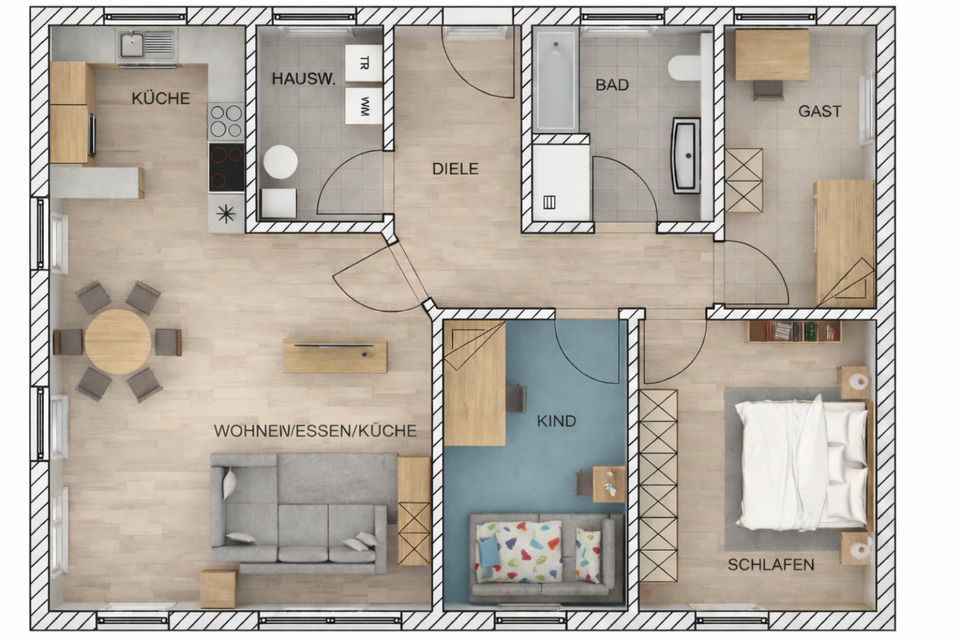 Massivbau-Bungalow inkl. Grundstück (754 m²) – schlüsselfertig