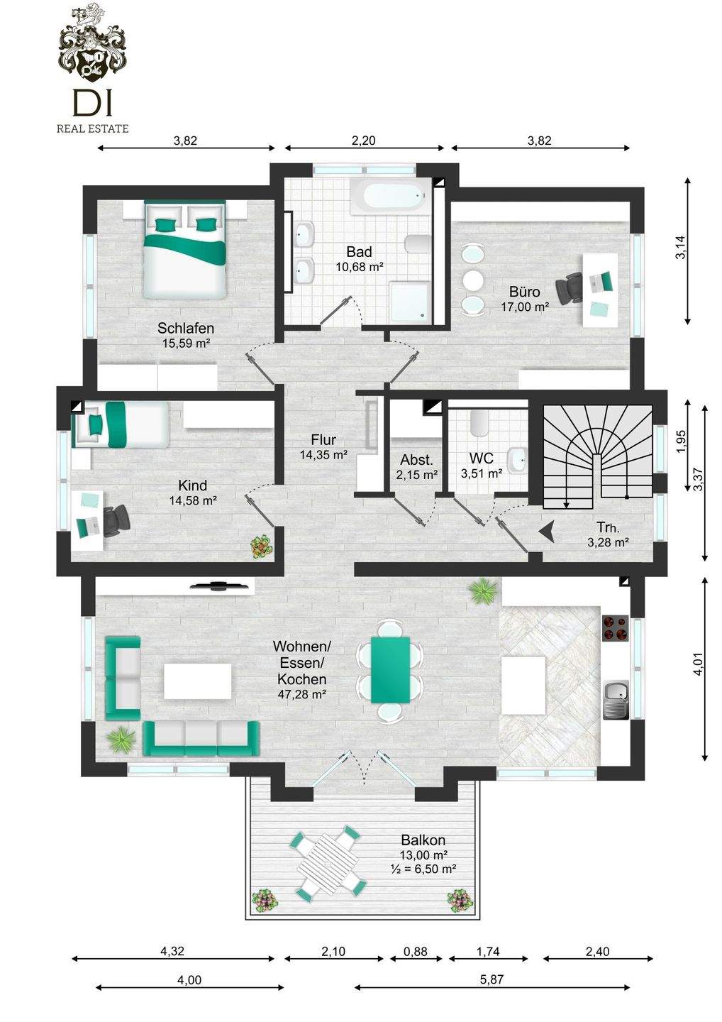 Zimmeranzahl :4 Gesamtgröße :ca. 129,00 m² Wohnfläche :ca. 129,20 m² Baujahr :2021 Frei ab :01.03.2026 Etage :1 Balkon :